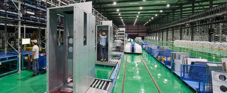 數字化工廠占地面積185畝,建筑面積5.8萬平方米,共分兩個生產車間,中壓成套生產車間和低壓成套生產車間,主要設備和系統包括:配電設備柔性裝配線、鈑金柔性自動化生產線、庫線一體化銅母線自動加工線、二次線束自動加工線,以及智能物流與倉儲系統、能源管理系統、綜合監控系統、數字化檢測系統等,具備年產5萬面中低壓智能配電設備的能力,并實現公司產品在城市軌道交通等供電系統中的全壽命周期管理,成為聯通上游供應商和客戶的數字化運營平臺。